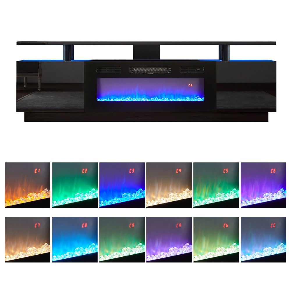 (Black) Recessed Electric Fireplace TV Stand with Remote Control
