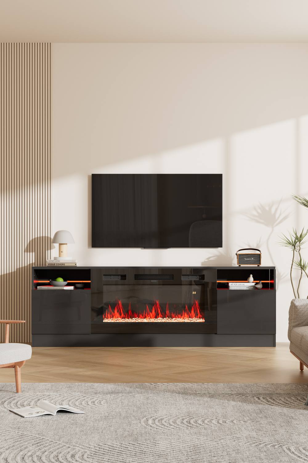 HFERTSCN Home 71/79" Fireplace TV Stand for Living Room, Modern Entertainment Center with 3D Flame Electric Fireplace, Remote Control Decor(Black,Large) FANDIAO