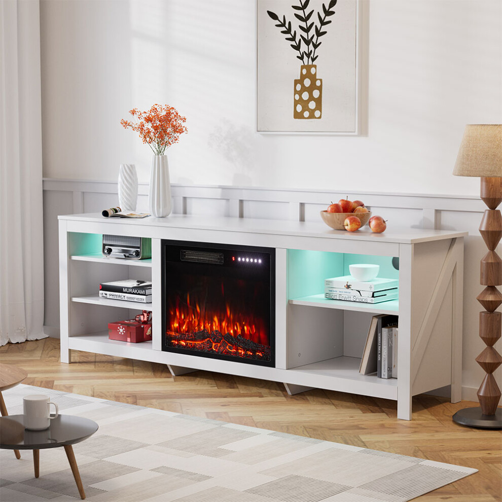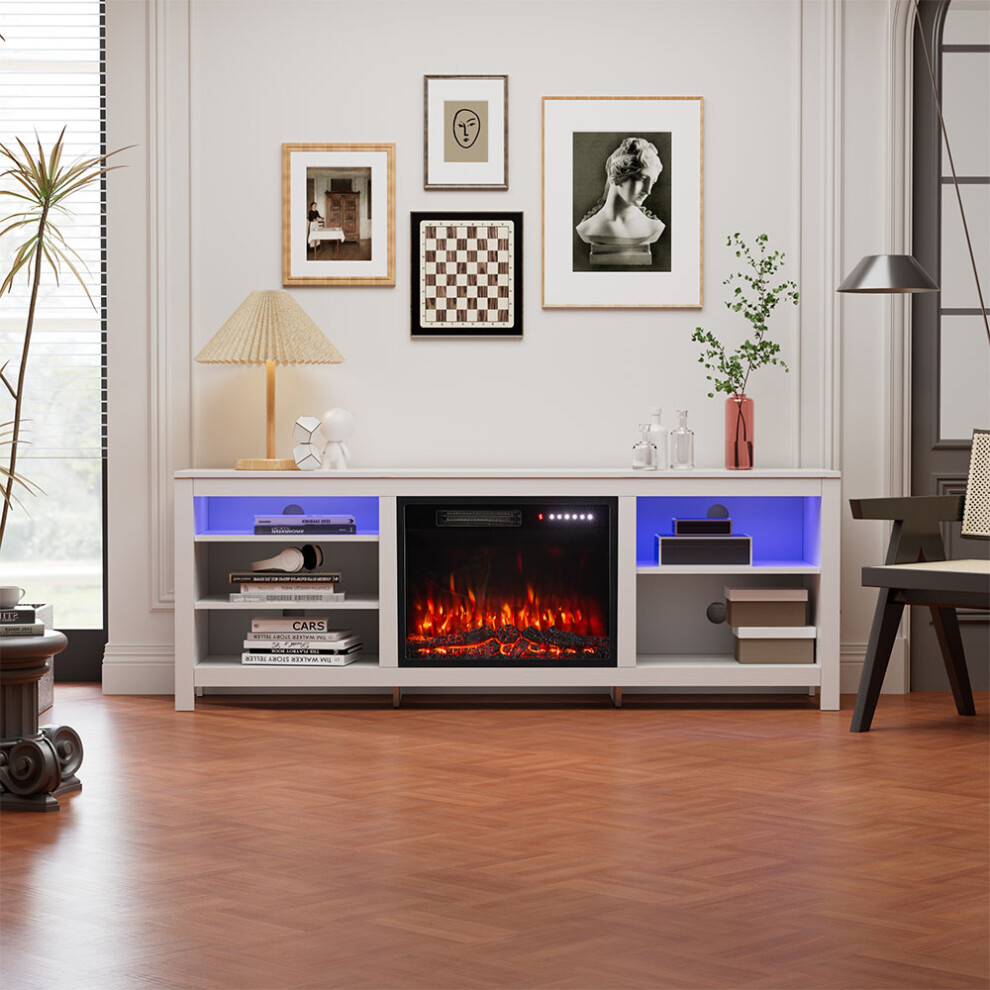 QINGGANG-0224 Ultra Slim Frame 71/79" Fireplace TV Stand for Living Room, Modern Entertainment Center with 3D Flame Electric, Remote Control(White,Small)