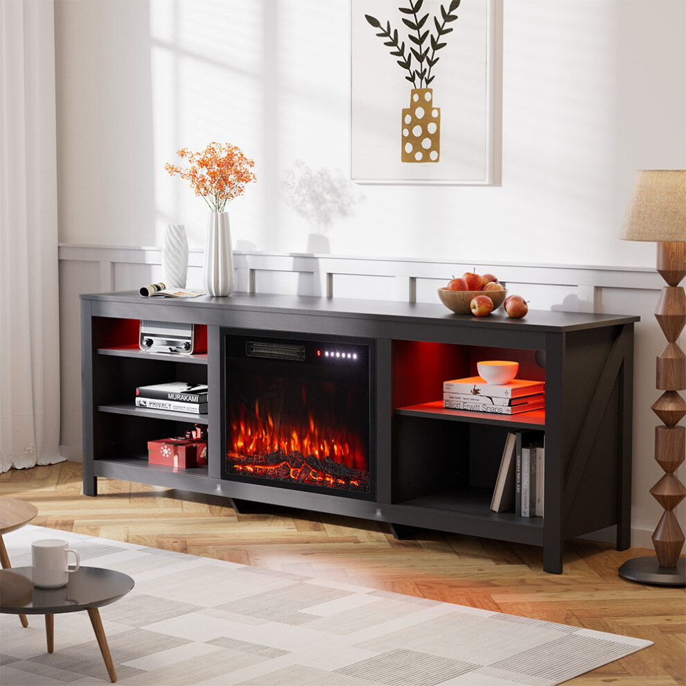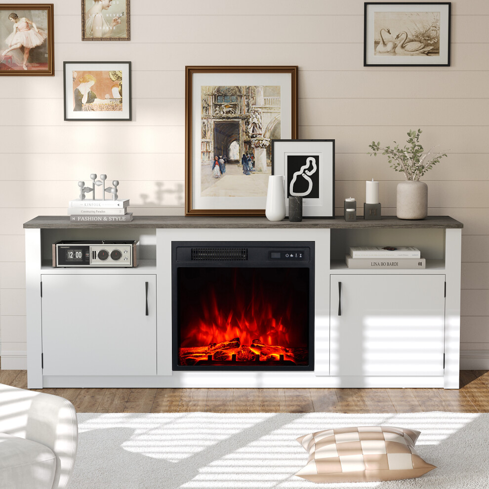 Electric Fireplace TV Stand Heater Console Table 18in Insert 55in Storage Unit