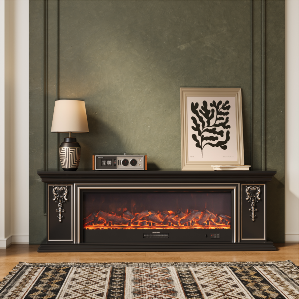 Living and Home Recessed Electric Fireplace TV Stand with Closed Storage Black