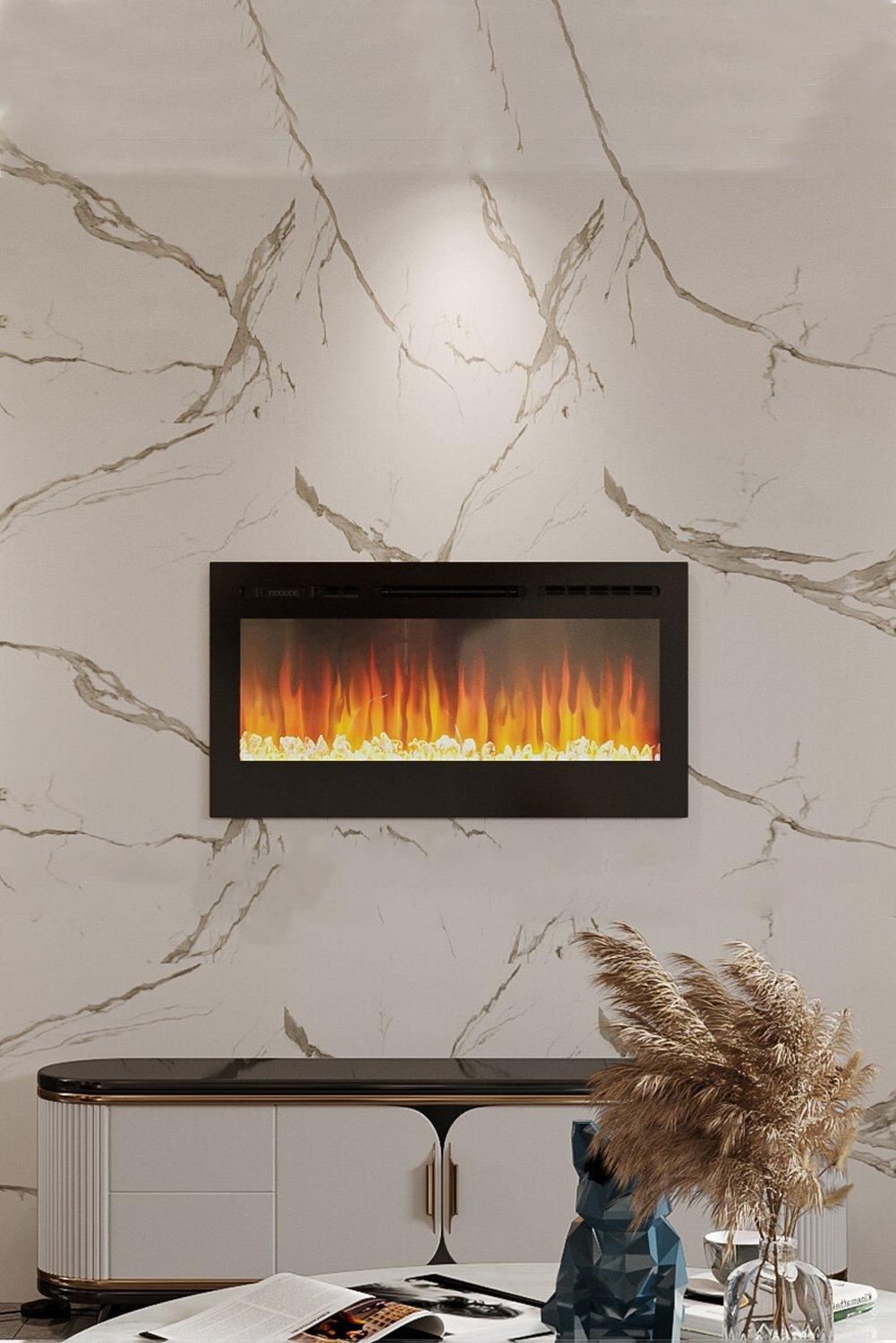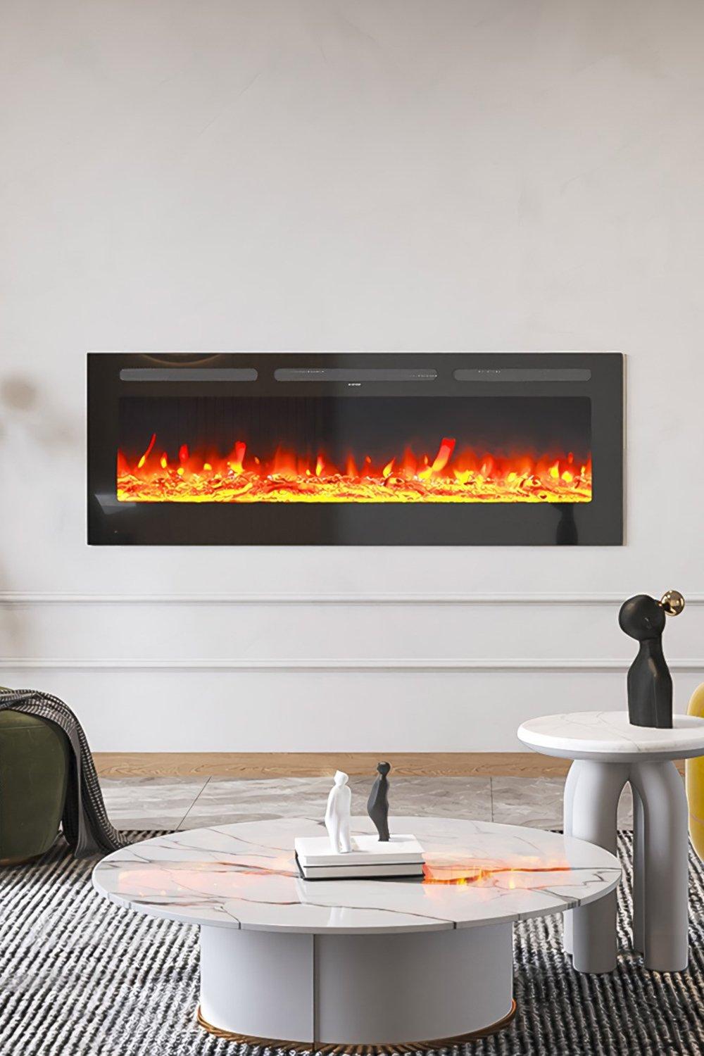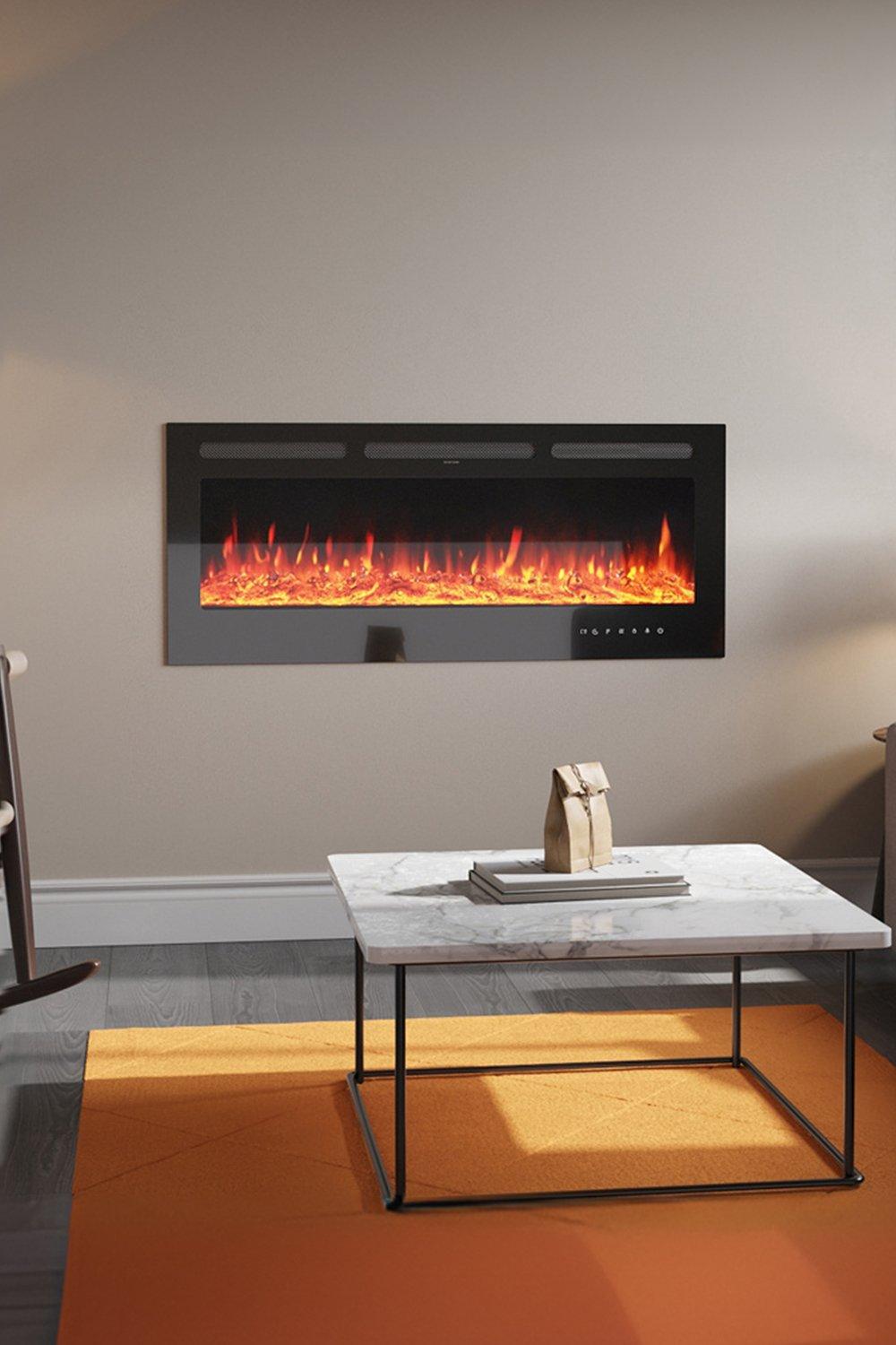 Led Backlit Glass Electric Wall Mounted Fireplace Fire Back Lights 1000/2000W