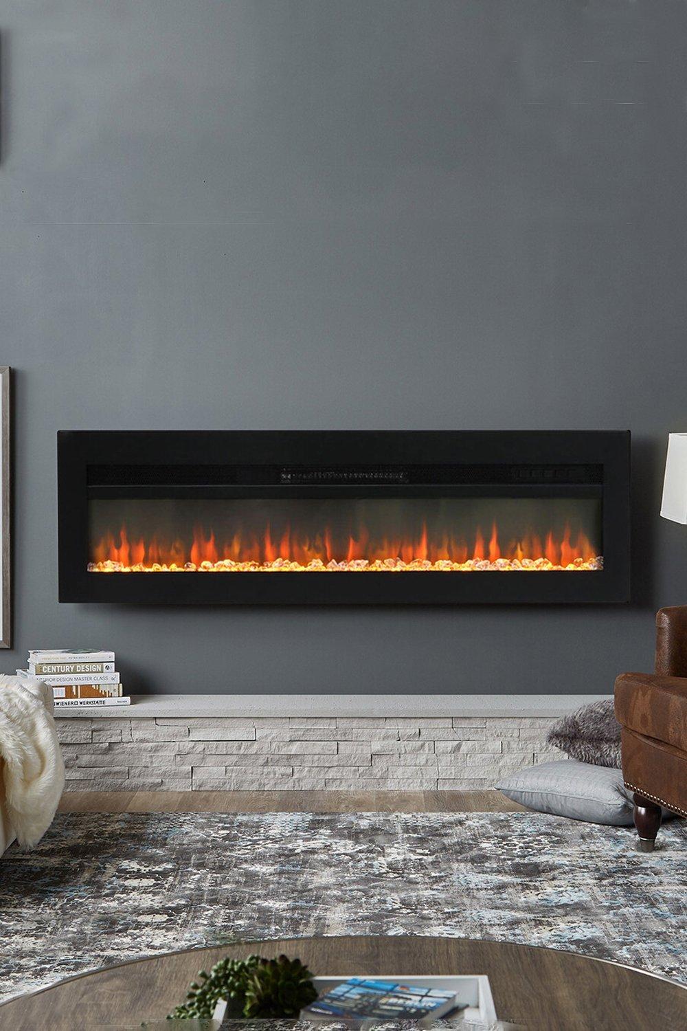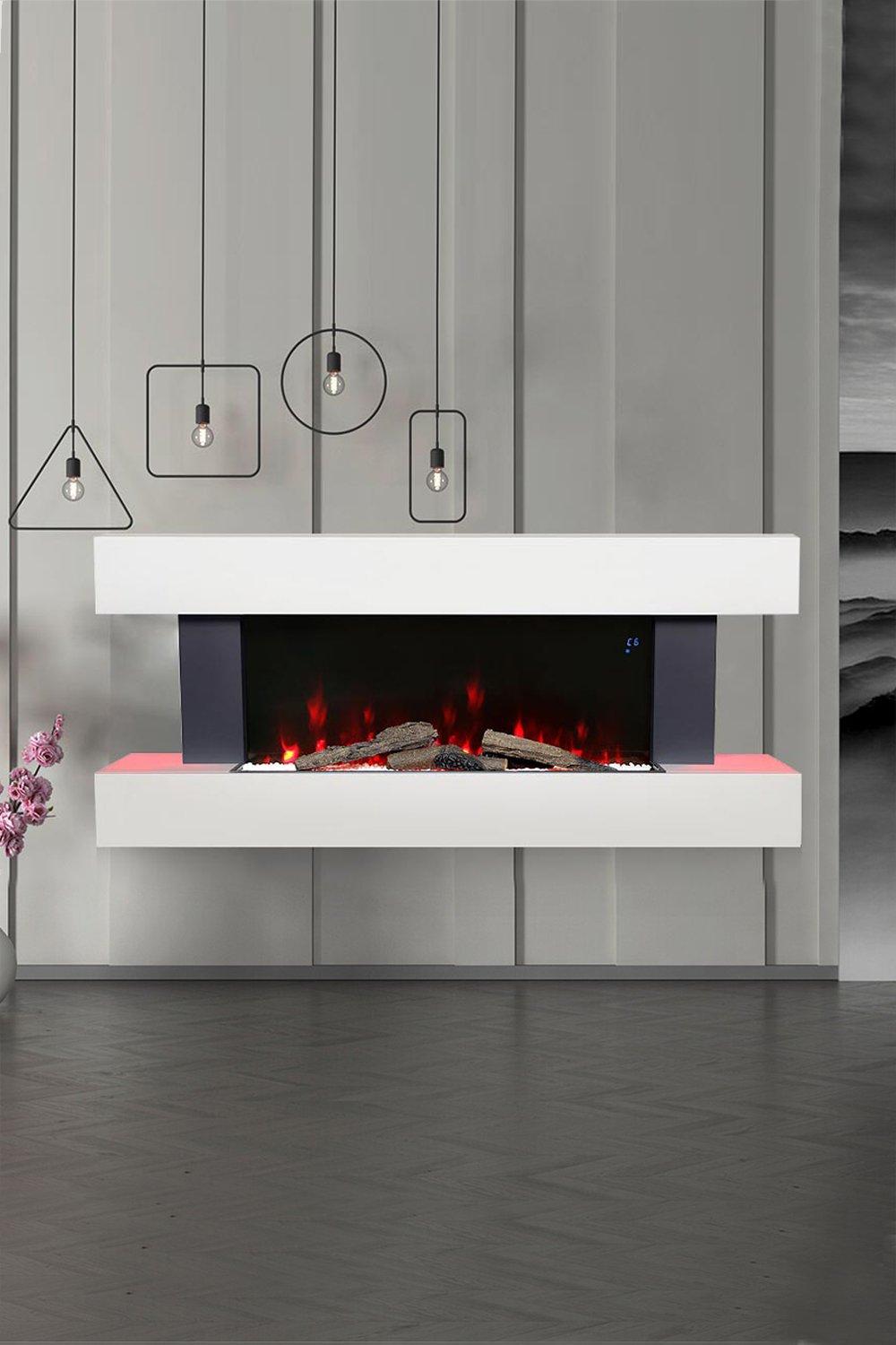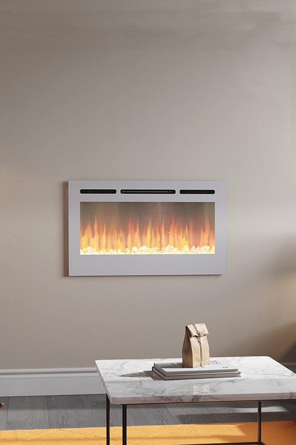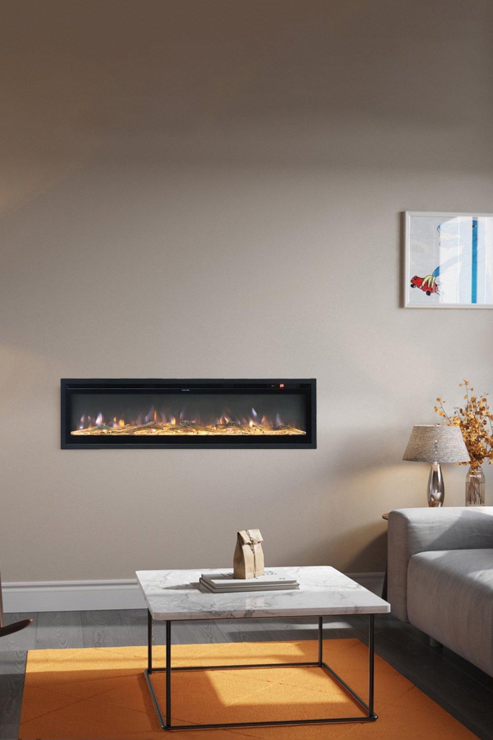Led Backlit Glass Electric Wall Mounted Fireplace Fire Back Lights 1000/2000W