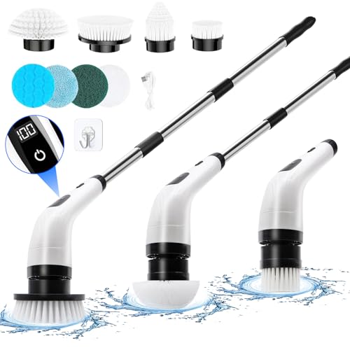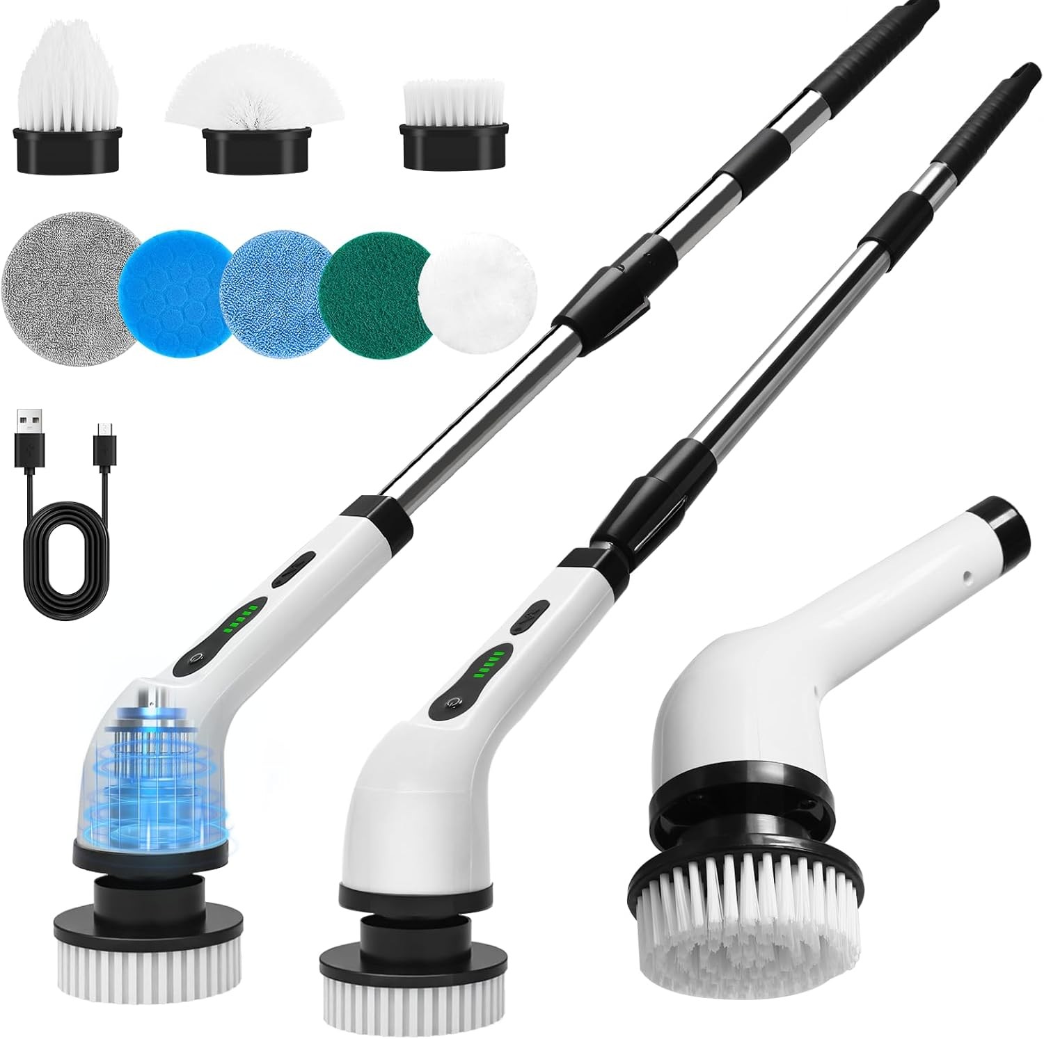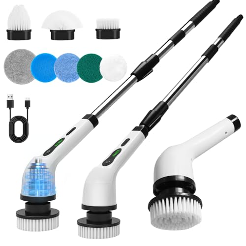 Electric Scrubber with 7 Brush Heads, Adjustable Handle,Power Bathroom Cleaner, Type C Interface, 2500mAh Battery for Bathtub, Tile, Floor