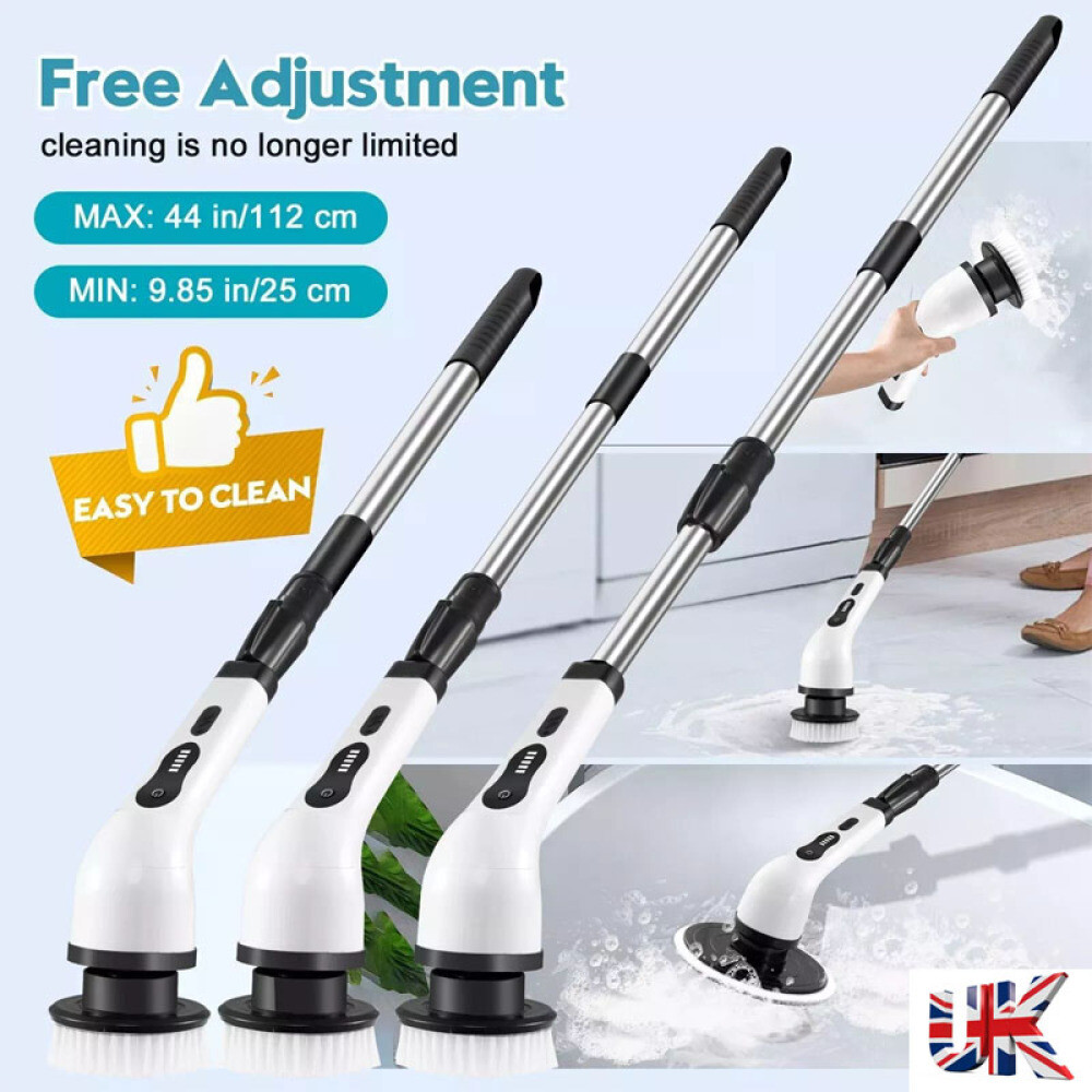 LyriFine Electric Cleaning Brush, Upgraded Full-Body IPX7 Waterproof Electric Spin Scrubber UK, 7 Heads, Long Handle & Dual Speed Electric Brush for Cleaning, Shower Cleaner for Bathroom Floor Tile