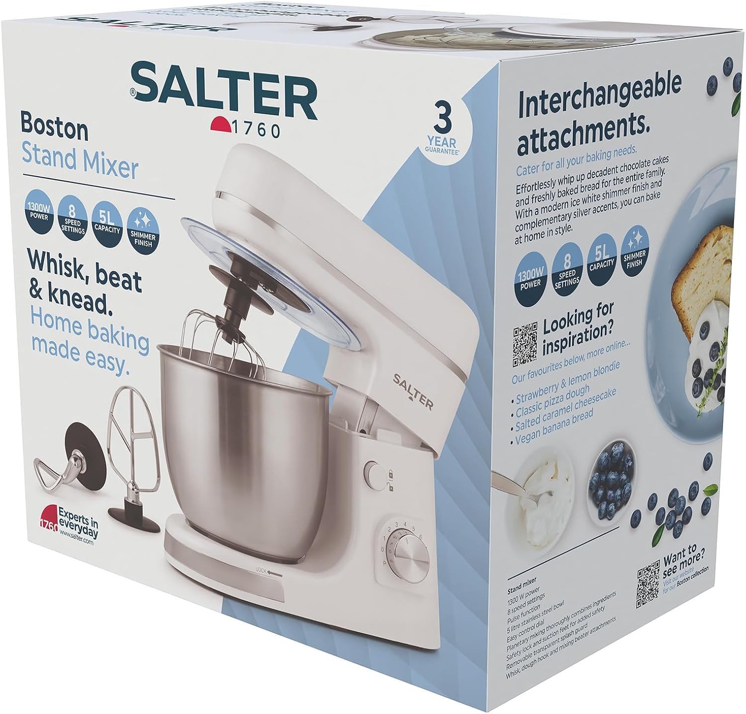 Salter Boston Stand Mixer – Electric Food Kitchen Mixer, 5L Stainless Steel Mixi