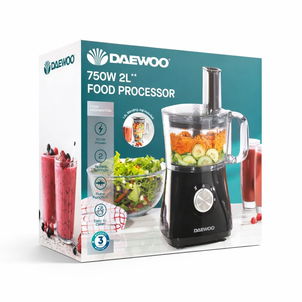 Daewoo All-in-1 Electric Food Processor Chopper & Blender Smoothie Maker Jug 2L
