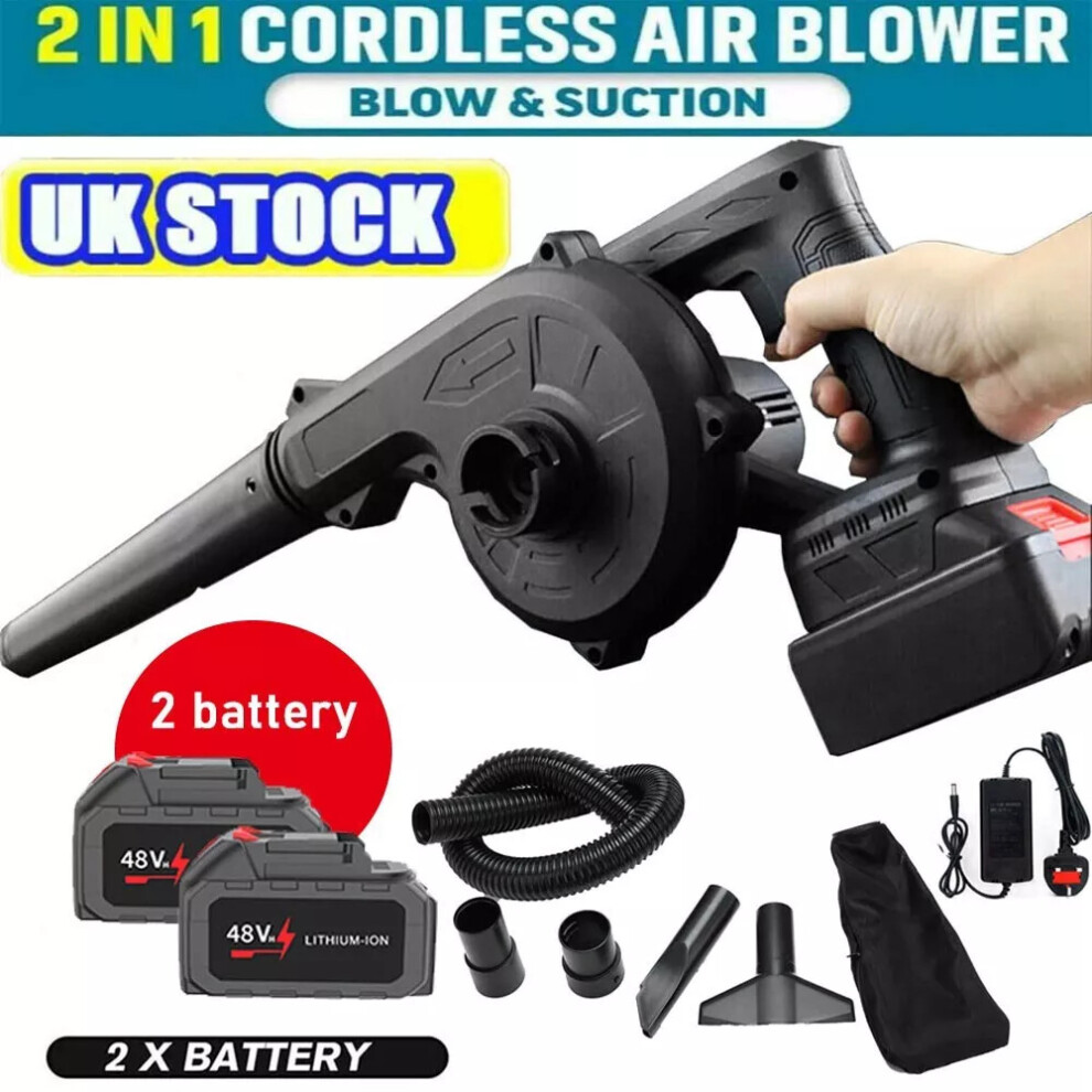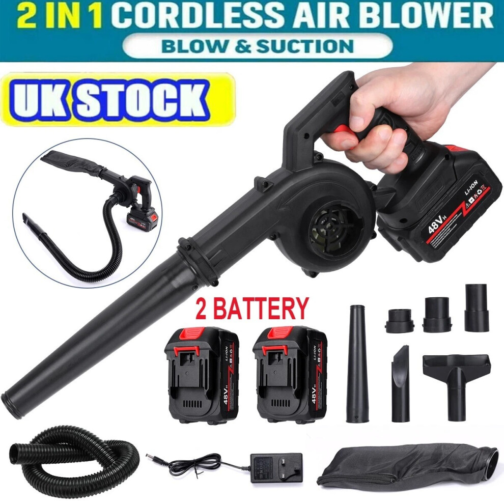 Electric Cordless Air Blower 48V Garden Snow Dust Leaf Suction Vacuum 2 Battery