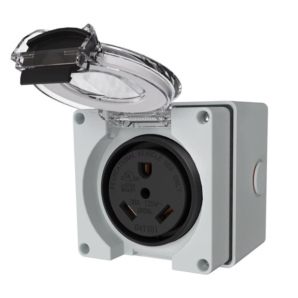 30Amp RV Power Outlet Box NEMA TT-30R Receptacle 125Volt Outdoor Weatherproof Dustproof for RVs Generators Electric Vehicles