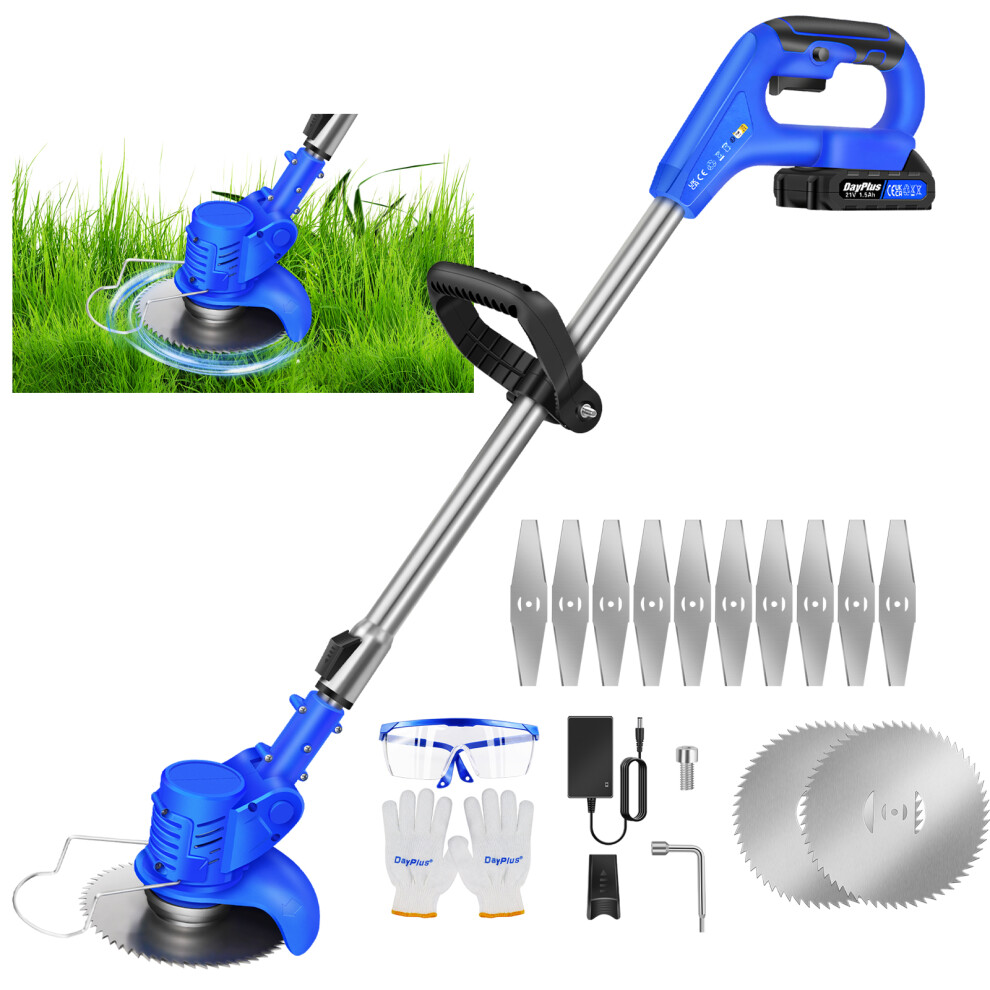 Cordless Strimmer Metal Blade Electric Garden Strimmers with Blades Grass Trimmers with Battery and Charger Brush Cutter Electric lawn Edger Tool for