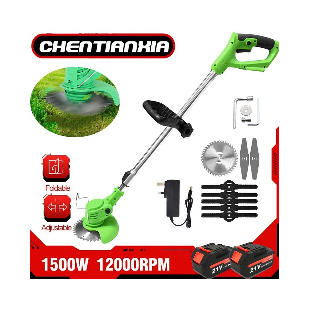 Grass Trimmer Garden Strimmer Electric Cordless with 2 Ã 21V Lithium Battery Fast Charger and Four Kinds Spare Blades Brush Cutter for Garden