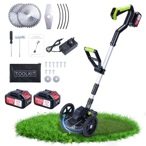 Grass Trimmer 21V Electric Cordless Strimmer & Brush Cutter with 2 Batteries, 3 Blades - Lawn Edger That Grass Trimmer - Battery Powered Yard Tool For Lawns and Farmland, DIY Garden, Lawn Care