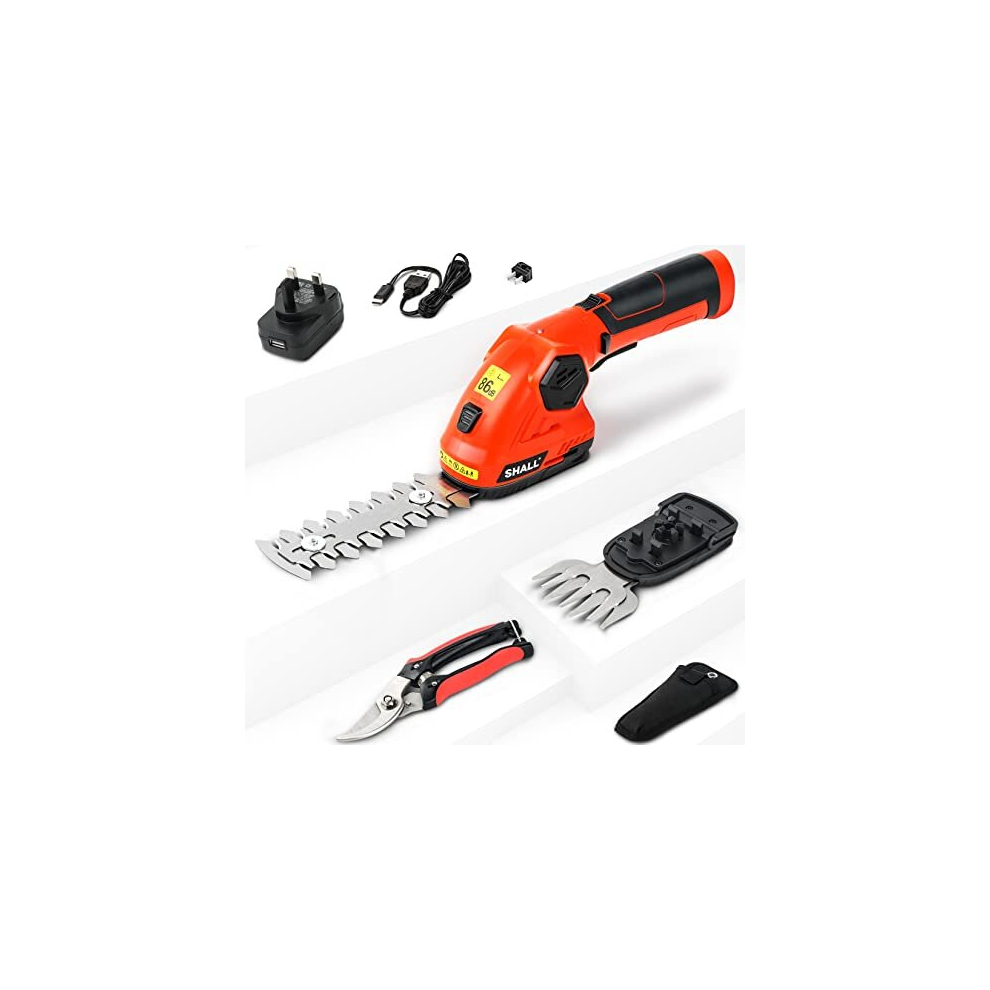 SHALL Cordless Grass Shears, Hedge Trimmer, 7.2V Electric Shrub Shears 2 in 1 Handheld Grass Cutter