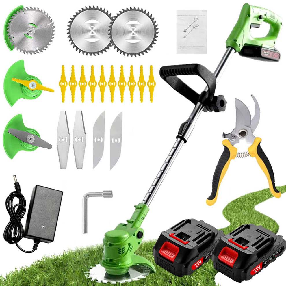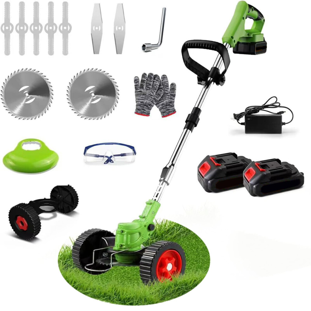 (2 Batteries) Cordless Grass Trimmer, Garden Strimmer/Edger with Battery Blades Electric Weed Cutter for Trimming Weeds Flower Trees
