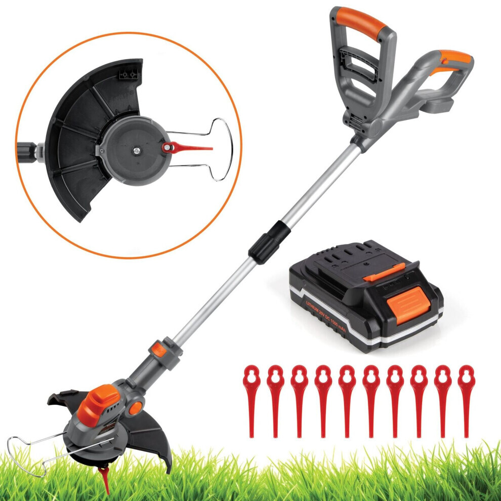 (1 Battery) Electric Cordless Strimmer Grass Trimmer Garden Edger with Metal Blades