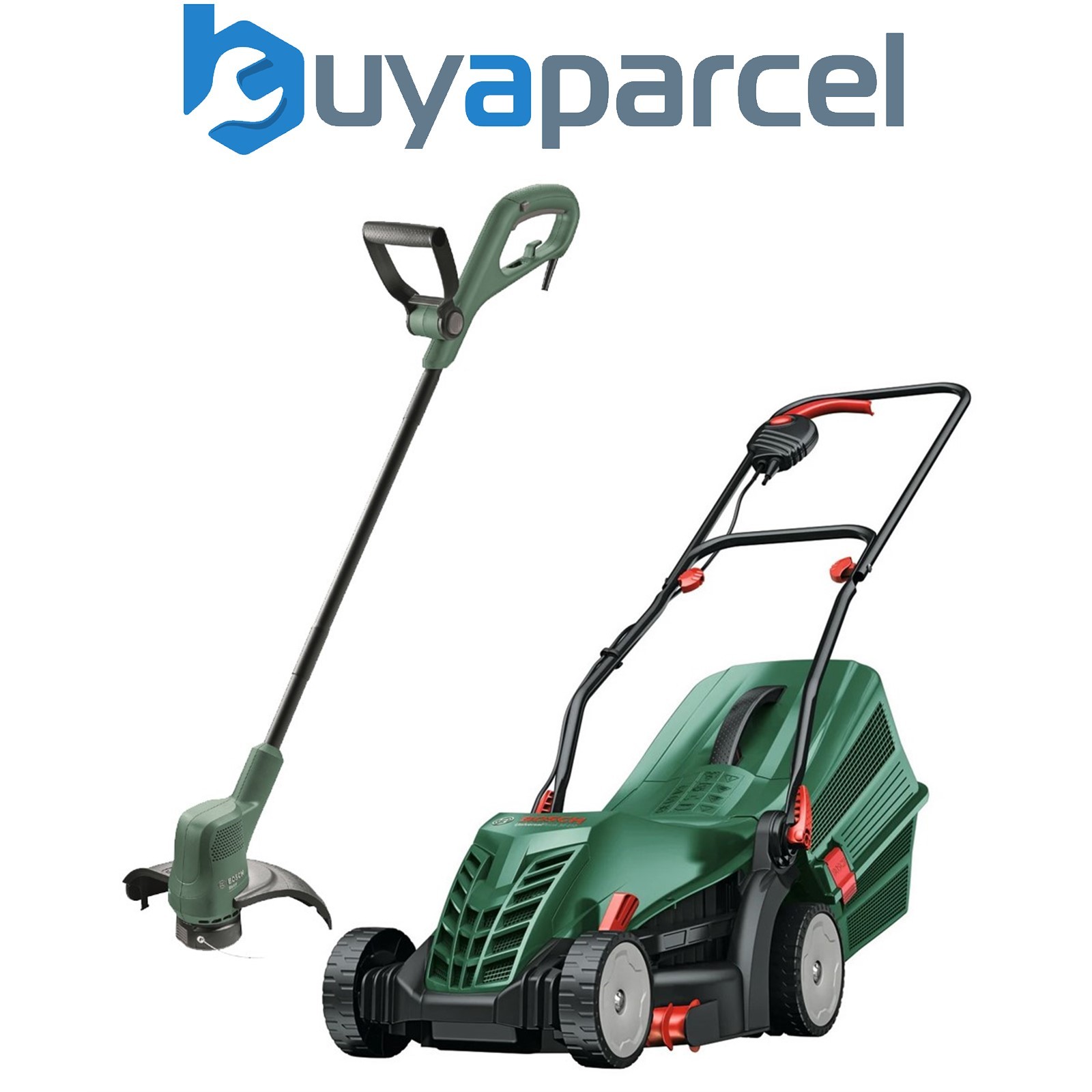 Bosch Rotak 34R Electric Lawnmower (1300 W, Cutting width: 34 cm, In carton packaging) & Bosch Electric Grass Trimmer EasyGrassCut 26 (280 Watt, cutting diameter 26 cm, in carton packaging)