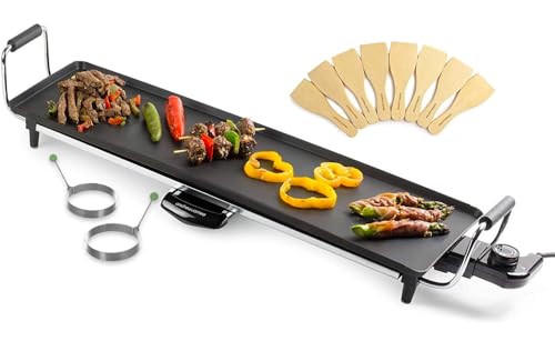 Andrew James Teppanyaki Grill Plate | XL Non-Stick Flat top Grill with Hot Plate | Teppanyaki Electric Griddle with 8 Wooden Spatulas and 2 Cooking Rings | Indoor grill for Cooking and Entertaining