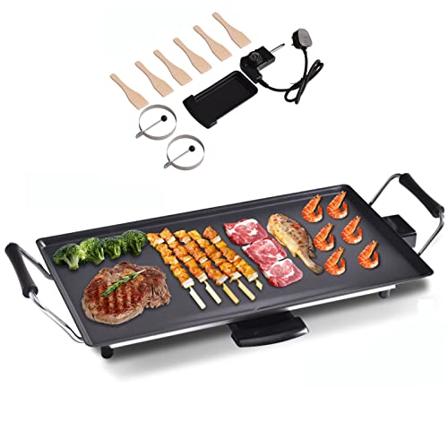 LIVIVO Large Teppanyaki Electric Grill – 2000W Tabletop Griddle with Non-Stick Cooking Plate, Adjustable Temperature, Drip Tray & 8 Wooden Spatulas – Indoor BBQ, Japanese Style Dining, Party Cooking