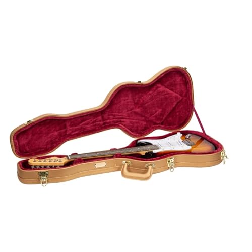 Crossrock Contoured Wooden Electric Guitar Case for Stratocaster & Telecaster | Luxury Gold Faux Leather, Burgundy Velvet Interior, Lock – Designer Series -Luxury Gold (CRW520STLG)