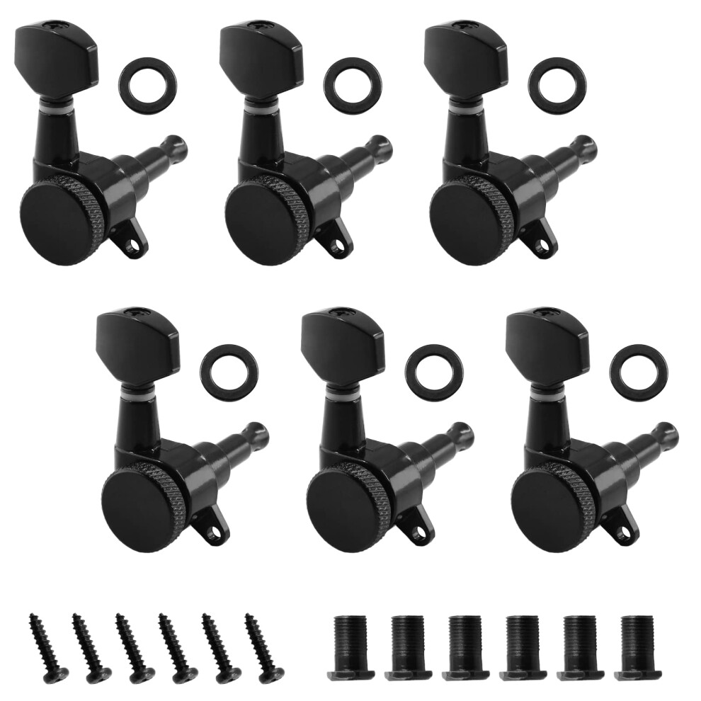 6 Pcs Black Locking Tuners for Fender Stratocaster Telecaster Electric Guitar, Sealed 6 Inline Tuning Pegs Set