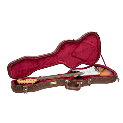 Crossrock Contoured Wooden Electric Guitar Case for Fender Stratocaster & Telecaster | Blossom Brown Finish,Burgundy Velvet Interior, Lock – Designer Series -Blossom Brown (CRW530STBQ)