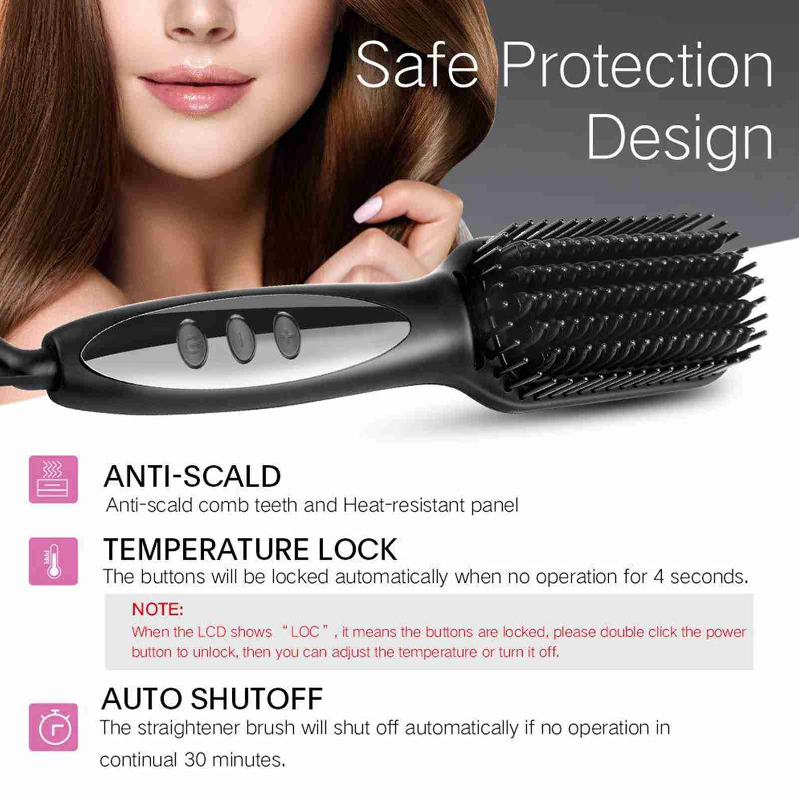 Electric Heated Hot Hair Brush Hair Straightening Brush with Adjustable Temp