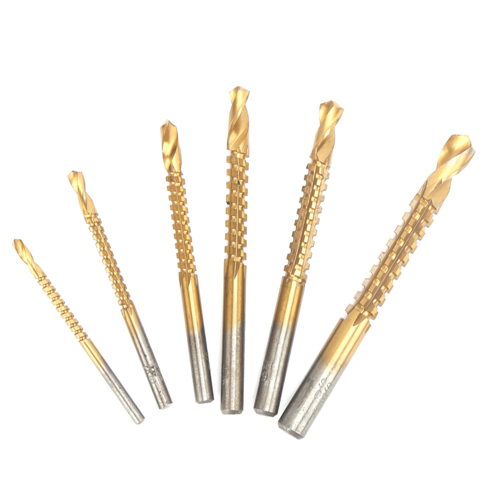6Pcs Sawtooth Drill Bit Twist Hand Electric Woodworking Saw Drill Allin1
