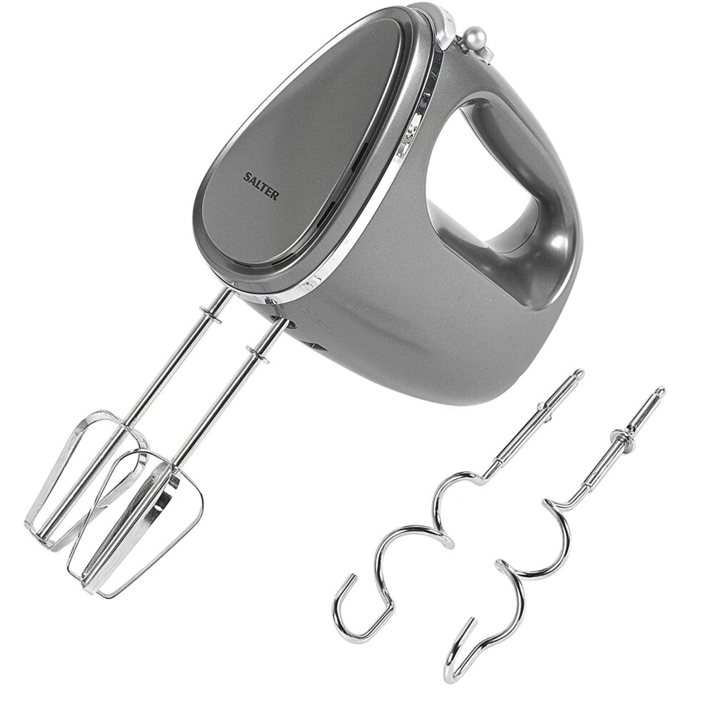 Salter EK4249GUNMETAL Cosmos Hand Mixer – Electric Baking Whisk, 5 Speed With Turbo Setting, Eject Function, Easy Cleaning, Includes 2 x Stainless Steel Mixing Beater and Dough Hooks, Grey, 300W