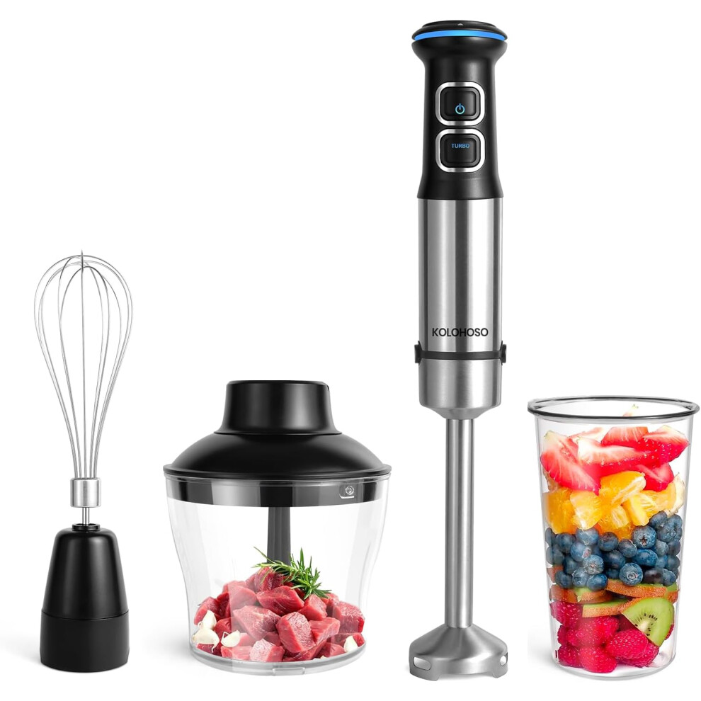 Healthomse Immersion Stick Blender, 5 in 1 Hand Blender 12-Speed Stainless Steel 800W Electric Food Blender Set with Chopper, 700ML Beaker, Milk Frother, Whisk with Turbo Setting, Ergonomically Handle