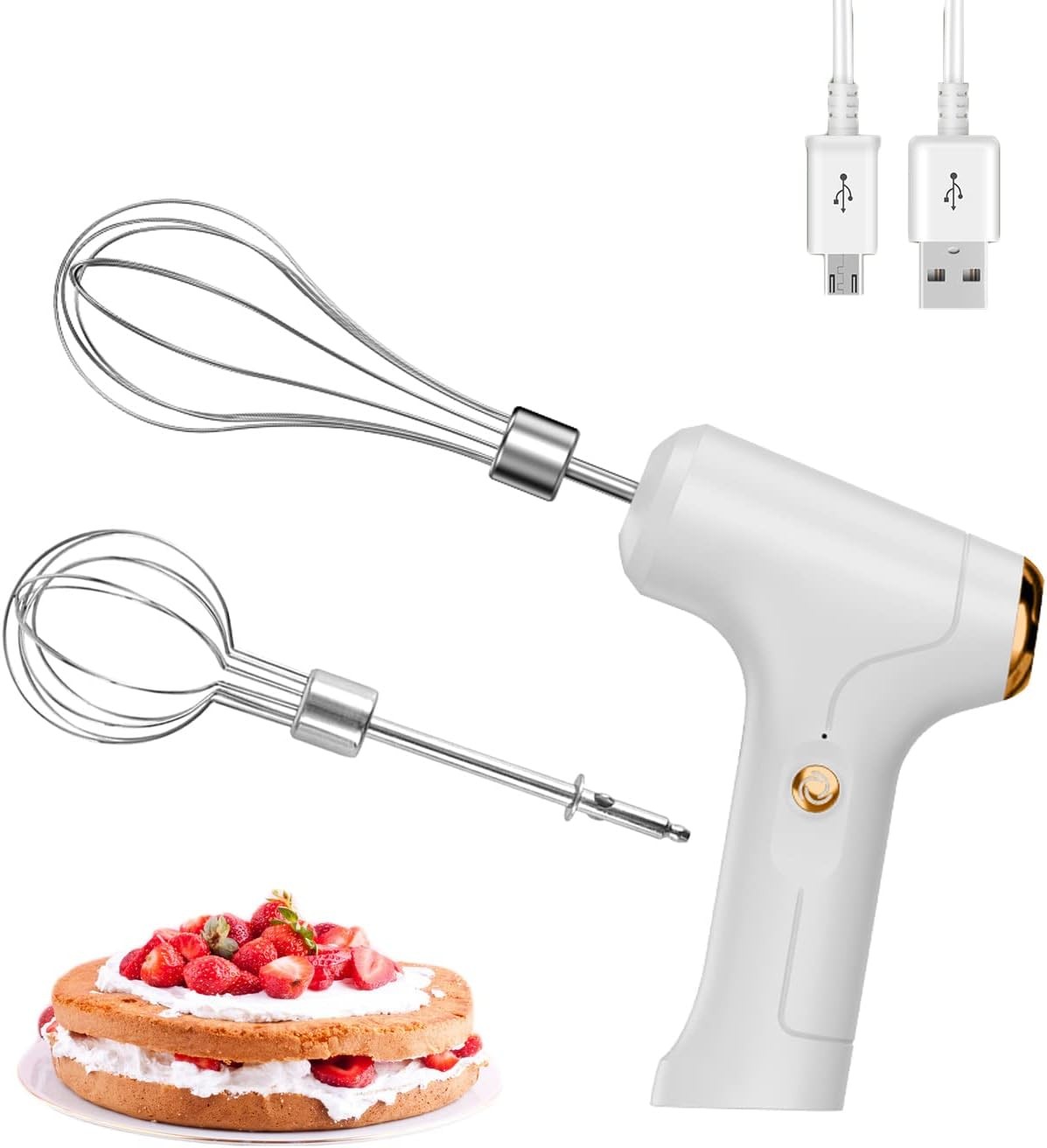 Electric Hand Whisk, USB Rechargeable, Wireless Portable Egg Beater White
