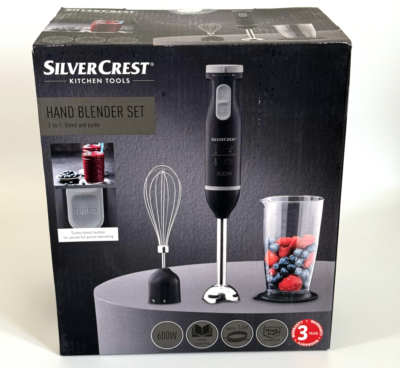 Silvercrest Stainless Steel 2 In 1 Electric Hand Blender Whisk & Measuring Jug