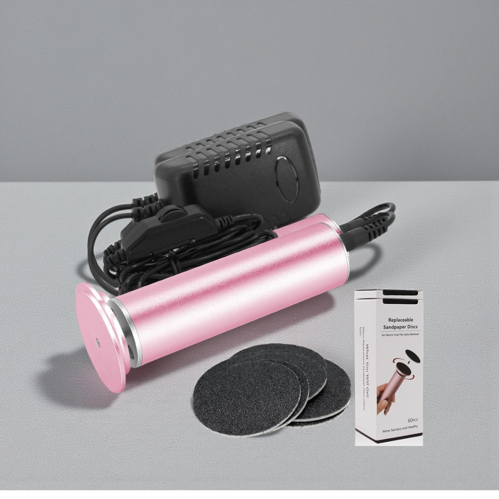 Electric Foot File Hard Skin Remover (Speed Adjustable) with 60pcs Replacement Sandpaper Disks, Professional Electronic Foot File Foot Hard Skin