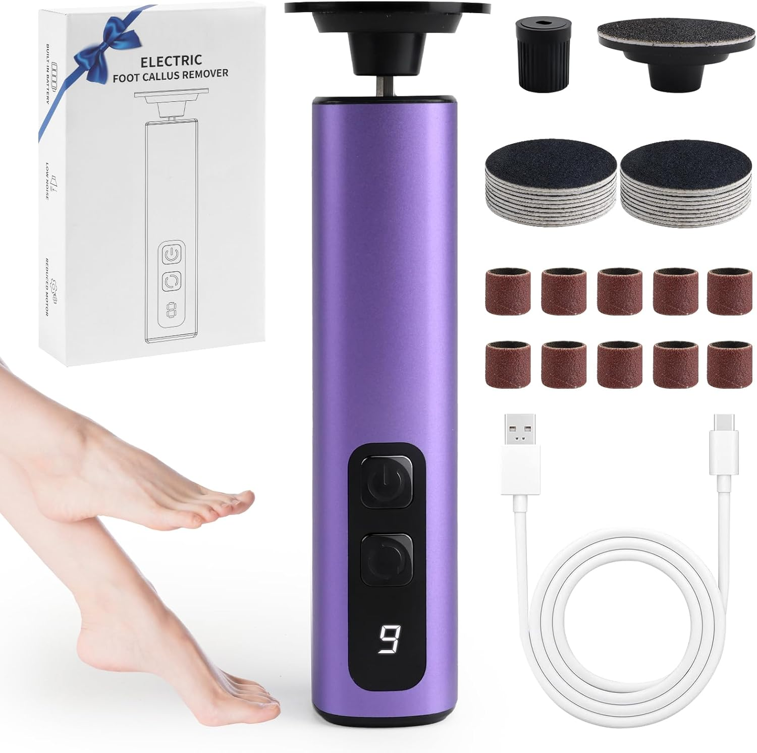 Electric Foot File Hard Skin Remover, 2 in 1 Foot Sander Grinder with 9 Adjustab