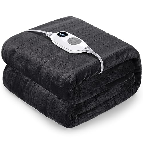 BOMOVA Electric Heated Blanket King Size Double 150x200cm Grey-Flannels Fleece Winter Blanket,Large Blanket with 10-Level Heating & 5 Auto Timers,for Home Office,Xmas House Warming New Home Gifts