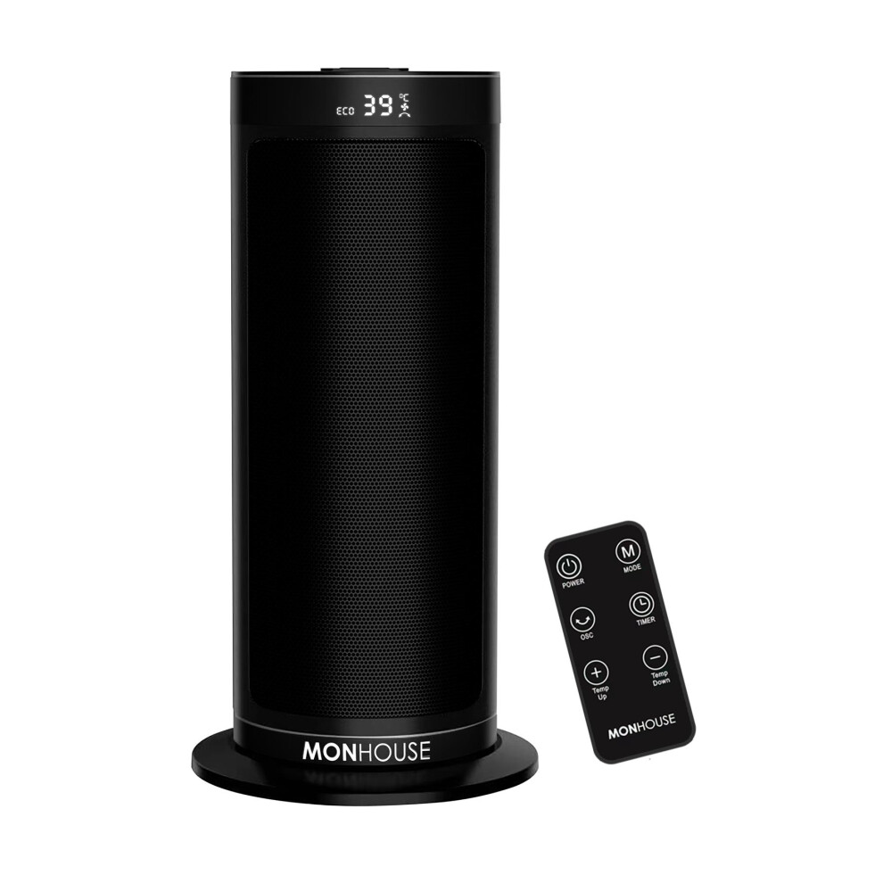 MONHOUSE 33" Oscillating Tower Fan Electric Heater - PTC Ceramic LCD Display, Remote Control, Overheat Protection And Safety Tip-Over Switch - Black