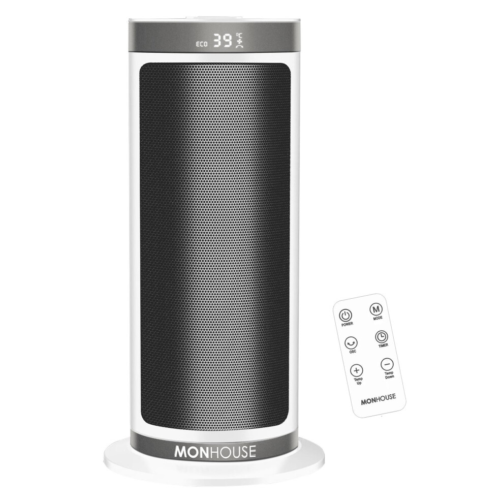 (White, 24cm) MONHOUSE Electric Space Heater - Energy Efficient PTC Ceramic Heater - Oscillation, Remote Control & Overheat Protection, 12H Timer
