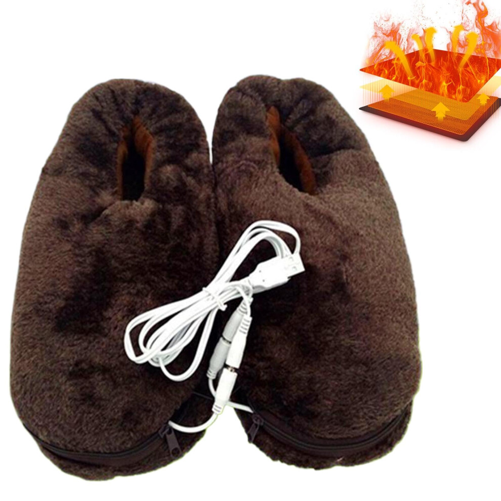 Heating House Shoes Plush Foot Heater Slippers Electric Plush Warming Shoes Heated Foot Warmer One Size Brown
