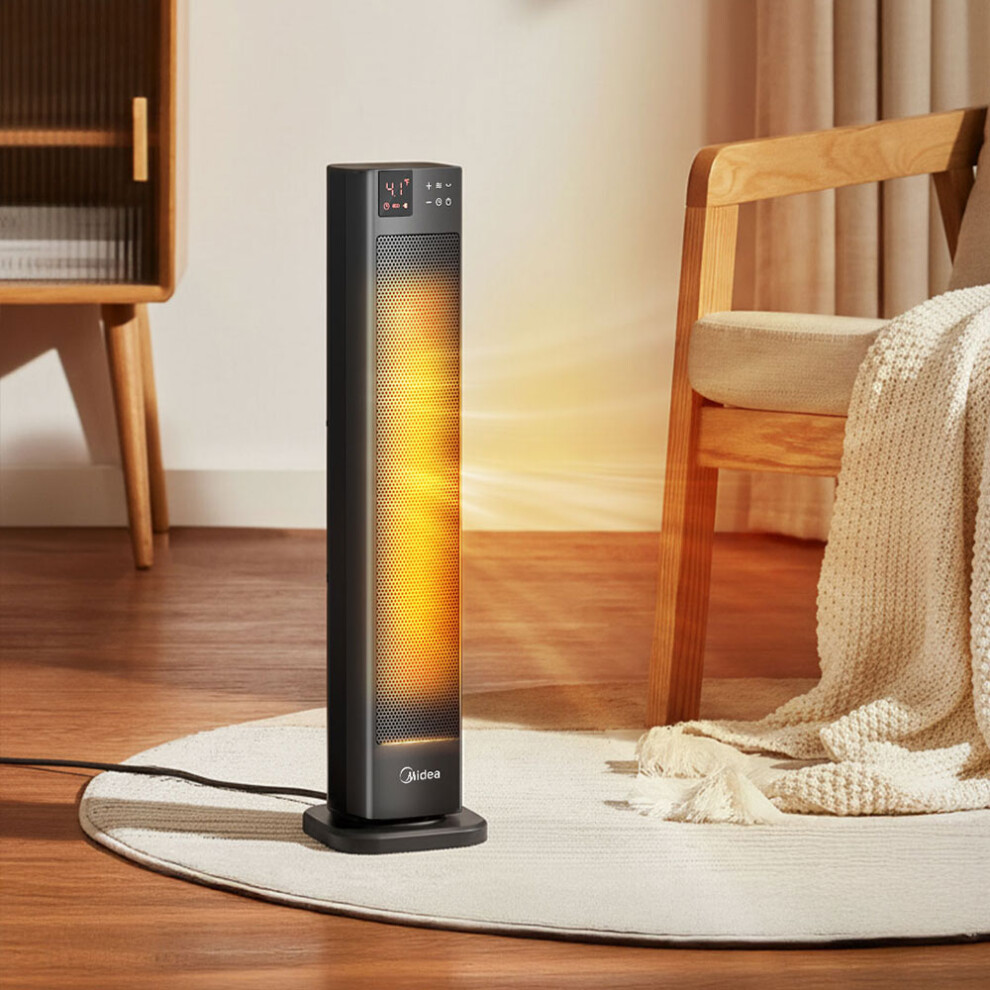 MONHOUSE Oscillating Tower Fan Heater with Fireplace 33 inches - Portable PTC Ceramic Electric Heater with LCD Display, Remote Control, Overheat Protection and Safety tip-over Switch - Black