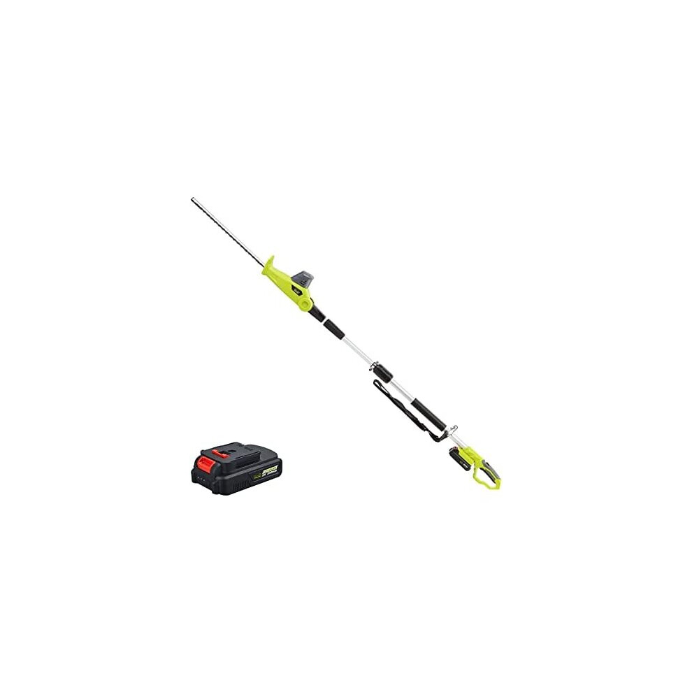 Cordless Pole Hedge Trimmer, Telescopic Long Reach 20V 2000mAh Li-ion Battery, Electric Cutter, 65CM Blade, Cutting Length 51CM , 16mm Tooth Opening