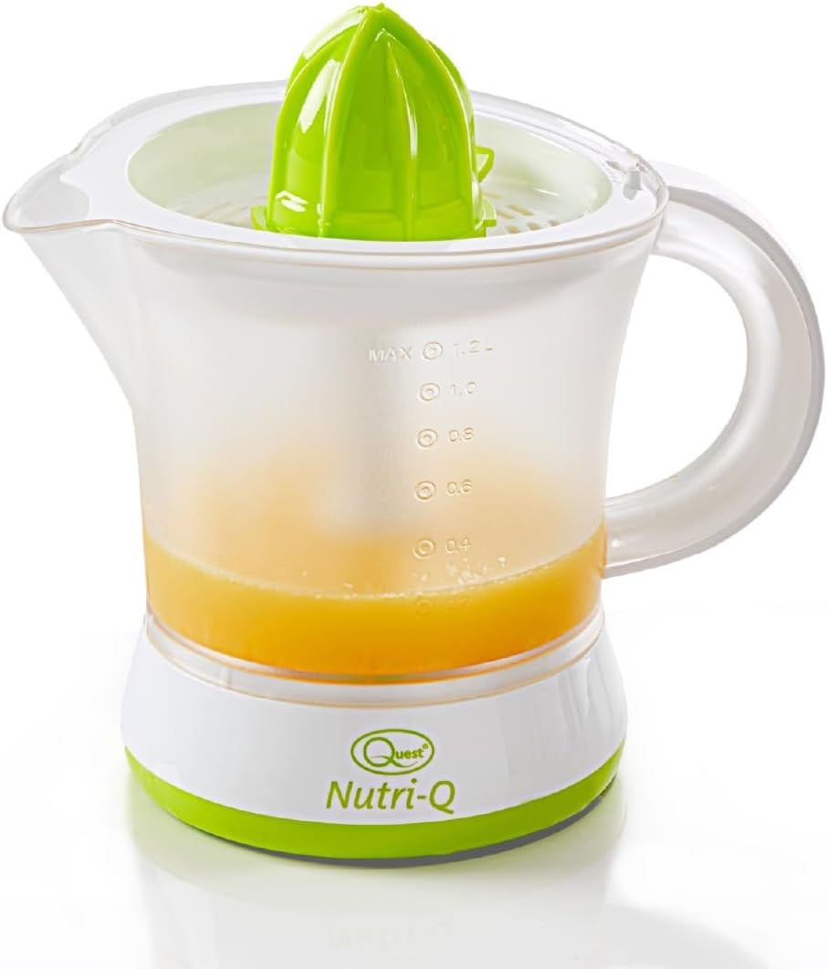 Quest Nutri-Q 34210 Quick Press Electric Citrus Juicer / 2 Different Cone Sizes / 1.2L Jug/Adjustable Pulp Strainer/Dual Direction Juicing/Low Noise/Dishwasher Safe Parts