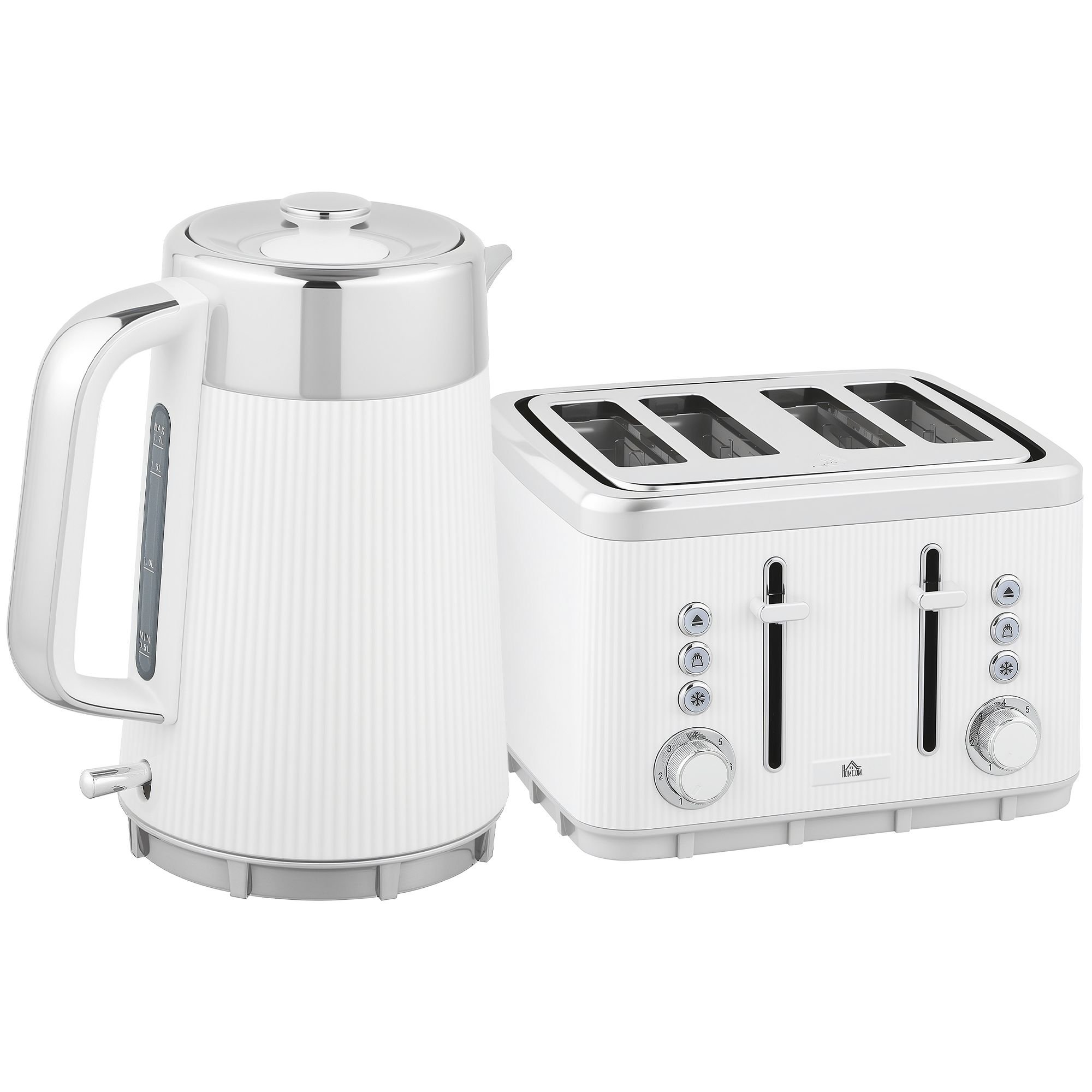Homcom Electric Kettle And Toaster Set, 3000w 1.7l Uk Strix Thermostat Rapid Boil Jug Kettle With Limescale Filter, Cool Touch Body, 4 Slice Toaster W