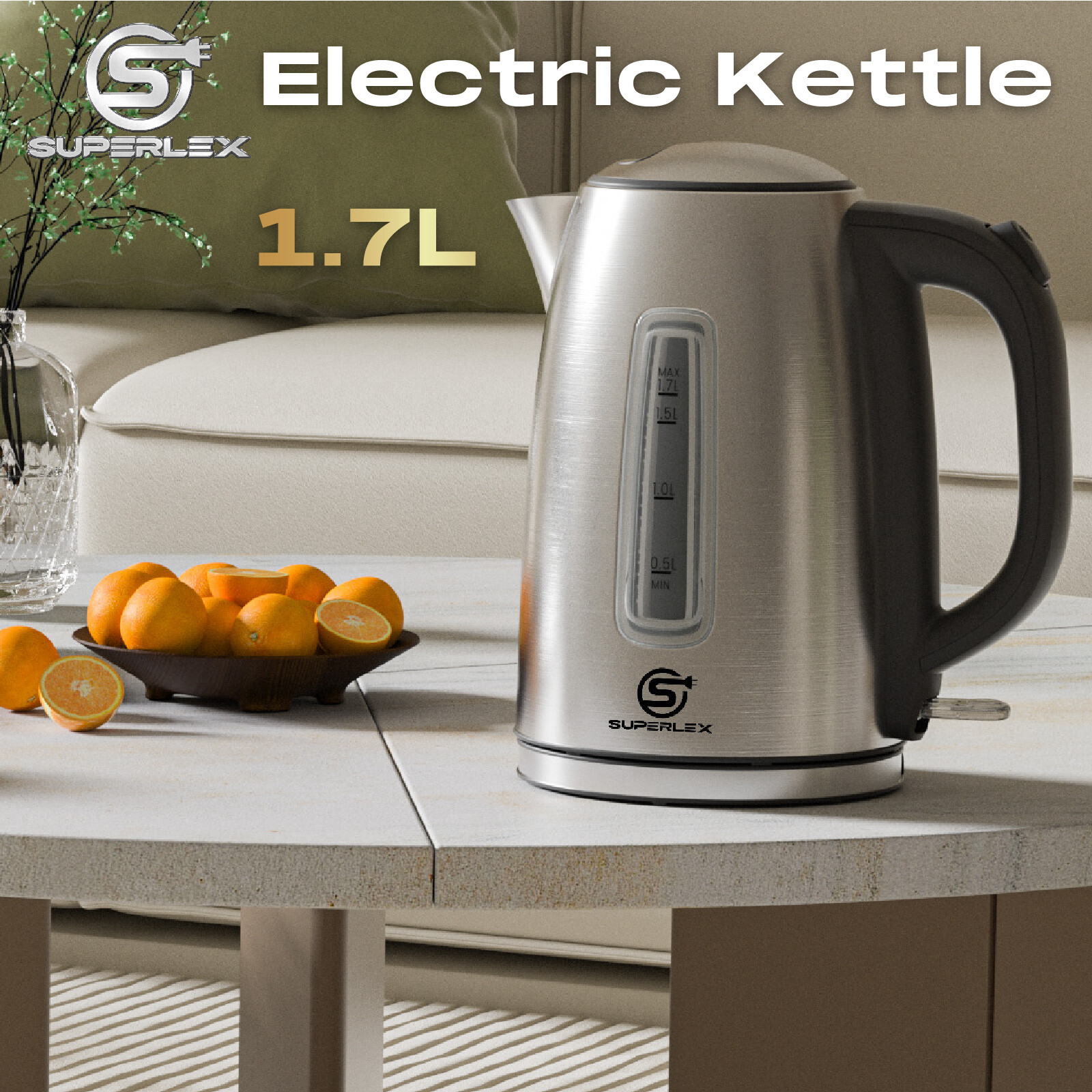SUPERLEX ELECTRIC 1.7L KITCHEN KETTLE CARAVAN TRAVEL HOT WATER JUG PORTABLE UK