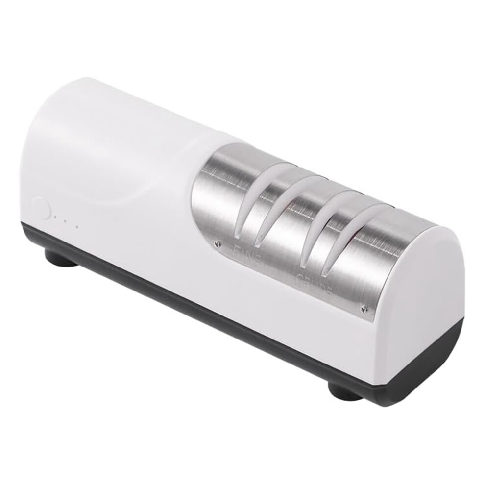 Sharpen knives electric portable reusable kitchen gadgets knife sharpening tool reliable for garden tools picnic camping, white