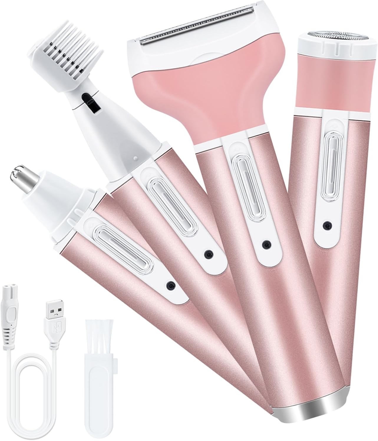 ACWOO Electric Lady Shaver, Cordless 4 in 1 Electric Shaver for Women, Rechargeable Painless Electric Lady Razor Bikini Trimmer Wet and Dry Hair Removal for Face Legs Underarm Bikini Nose and Eyebrow