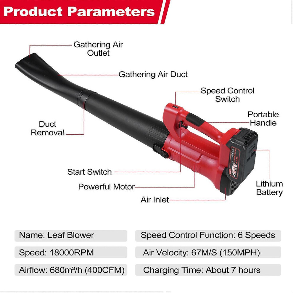 (As show, One size) Leaf Blower 150 MPH 21V Powerful Motor Handheld Electric Leaf Blower for Lawn Care 6 Speed Mode Batt