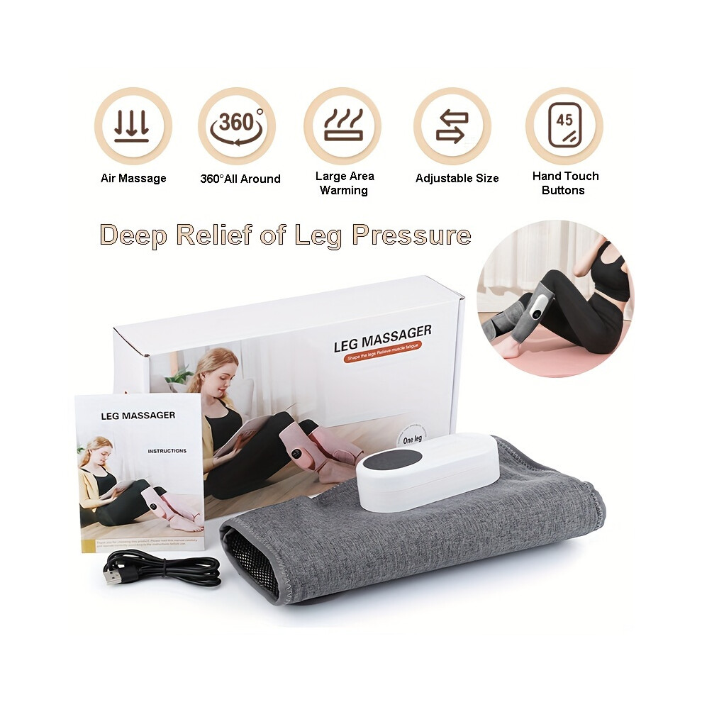 (1pcs) Electric Heated 360 Leg Massager Warm Wireless Air Pressure Massager Airbag Compresstion Relax Foot Calf Muscle Relieve Fatigue