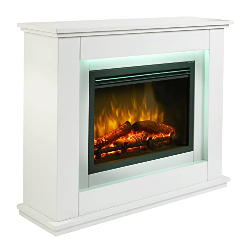 Endeavour Fires Danby 48" Electric Fireplace Suite with Realistic Flame & Log Effect Fire, 13-Colour LED Lighting, Remote Control, Off-White Surround