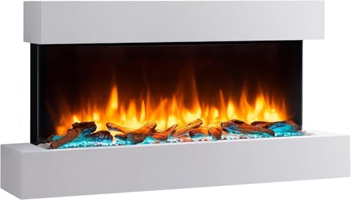 Endeavour Fires Runswick 43" Wall Mounted Electric Fireplace with Off-White Surround, Log/Stone/Crystal Fuel Beds, Realistic Flame Effects & LED Lighting, 1–2kW Heater, Remote Control