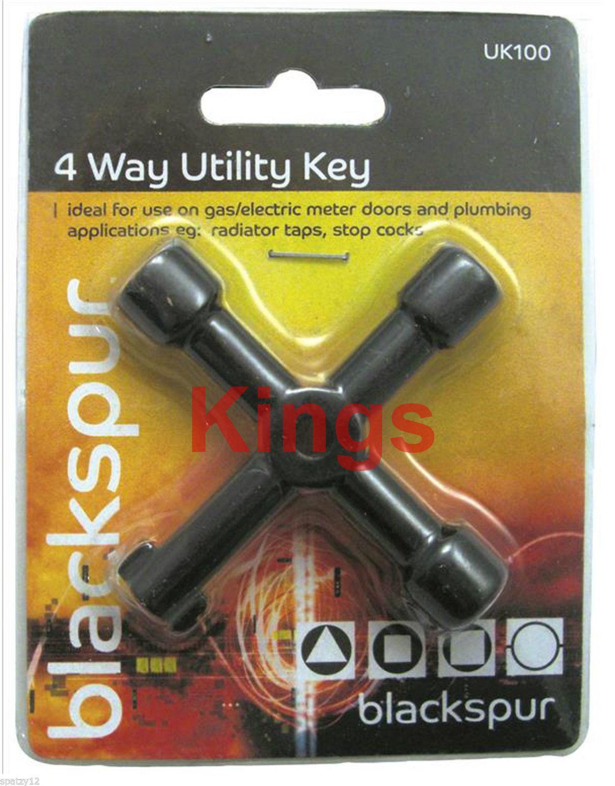 4 WAY UTILITY KEY RADIATOR GAS ELECTRIC METER DOORS PLUMBING KEY MULTI FUNCTION