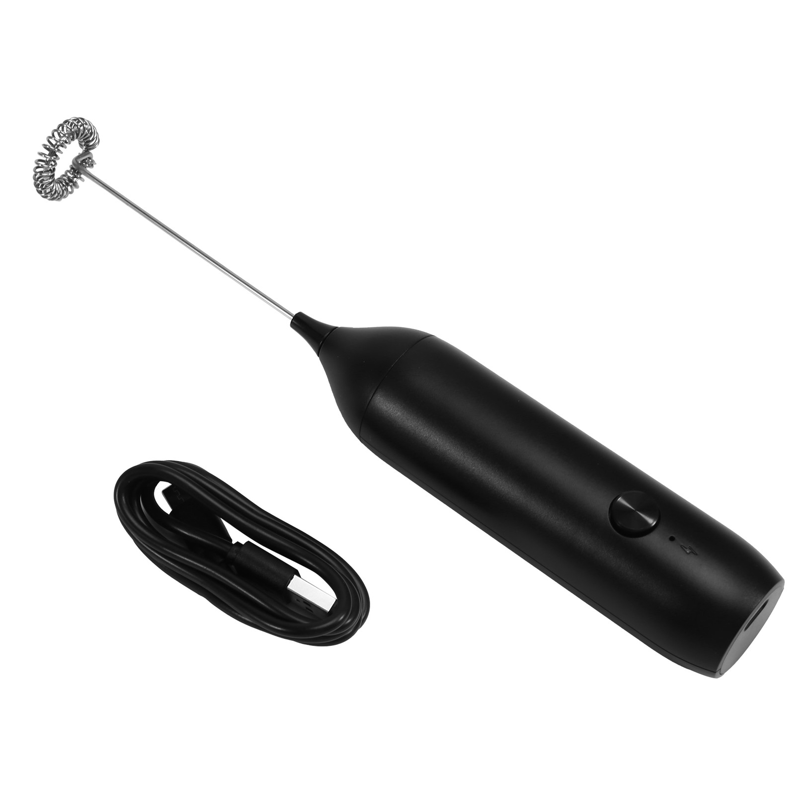 Electric Coffee Milk frother, Handheld Milk frother, USB Rechargeable, 1 Milk Frothing Head, 1 Stirring Head, Suitable for Matcha, Coffee, Latte, Cappuccino, hot Chocolate (Black)